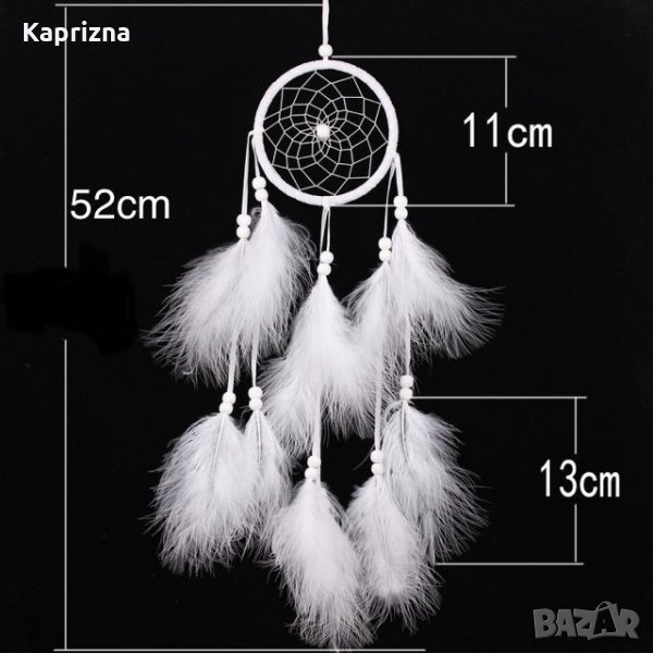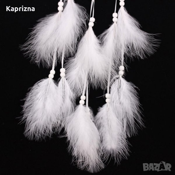Материал: ABS кръг, дървени мъниста, пера