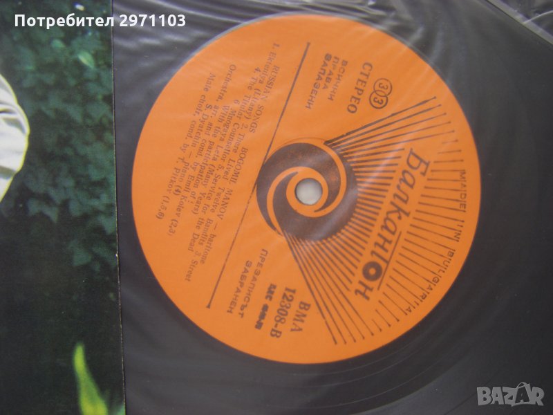 Грамофонна плоча - ВМА 12308 - Богомил Манов - баритон.Руски песни.