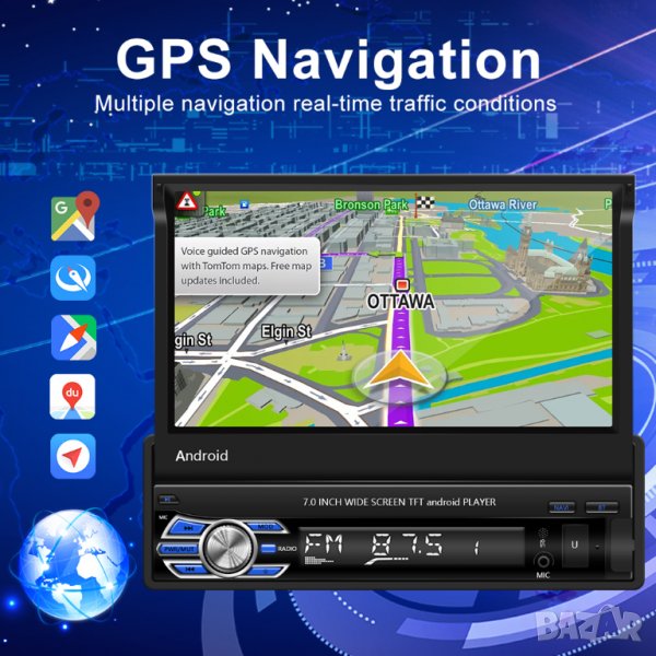 - GPS навигация: Поддържа много видове навигационни приложения като Baidu Map, Gaode Map, Google Map, вградена офлайн карта