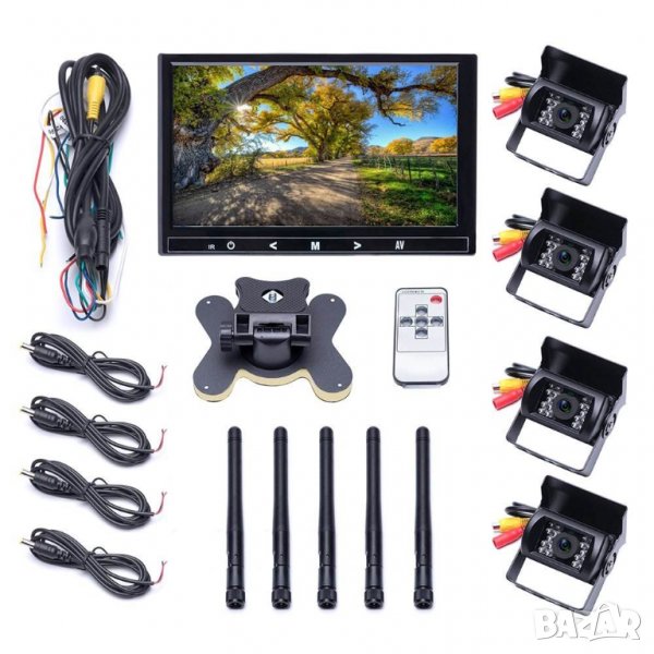 Супер промо цена от вносител! Оригинал! С четири безжични камери. 9 инча. Най-голям обхват. С новите подсилени вградени WIFI предаватели! Най-високо качество на изработка и материали от производител, наложил марката на пазара през годините!