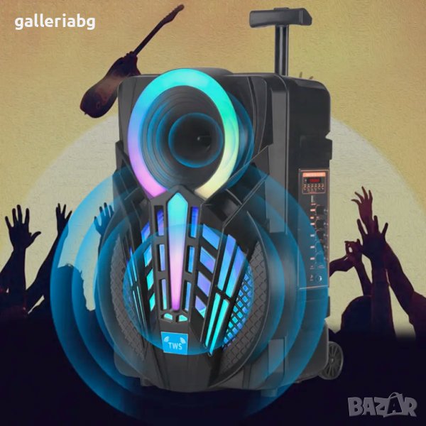 Преносимa Караоке Тонколонa с ЛЕД светлини GZ-P08 - 8 инча, микрофон, акумулаторна батерия, Bluetooth, USB, FM радио, SD Card, Aux