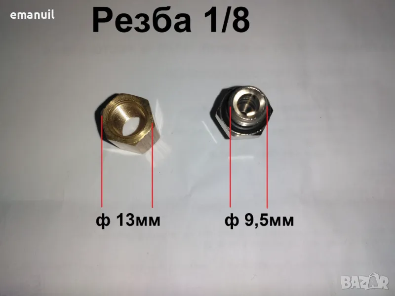 Щуцер 4mm + гайка на 1/8 резба за стягане към резервоар за излишното гориво.
