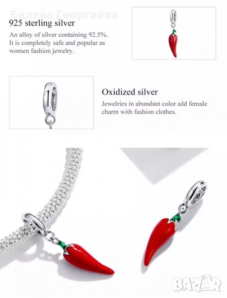 Сребърен талисман за гривна Пандора чушка Petite little peppers Модел 037 → Обява 35224188