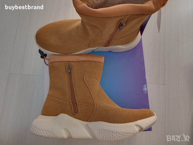 Наличен е номер 41/UK7.5/US8.5 като по етикет стелката е 27,3 см, но реално я измерваме 26,5. Материята е синтетичен велур. Отвътре са изцяло с топла подплата, включително и стелката.