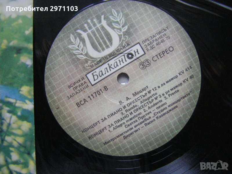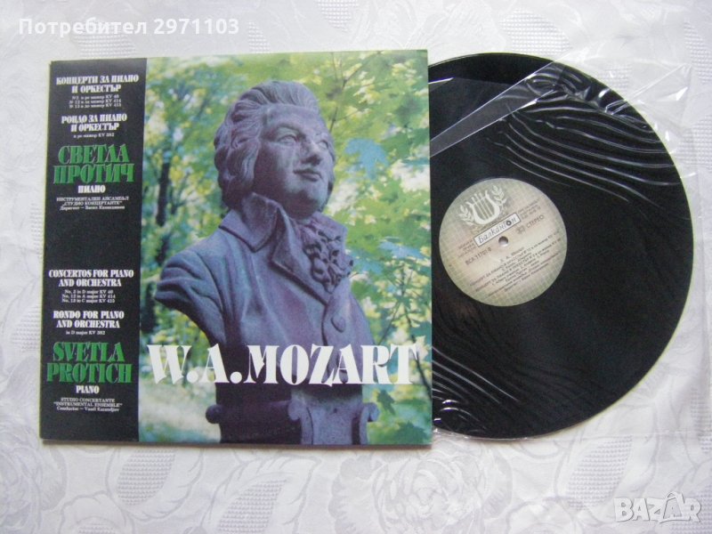 Грамофонна плоча - ВСА 11701/02 - В. А. Моцарт - Концерти за пиано и оркестър, изпълнява Светла Протич с Инструментален ансамбъл Студио концертанте - двойна плоча !