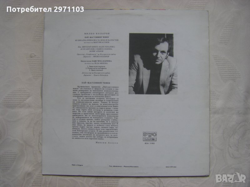 Грамофонна плоча - ВСА 11162 - Най-щастливият човек: музикална приказка за деца и възрастни по текст на Максим Асенов.Музика Милко Коларов.
