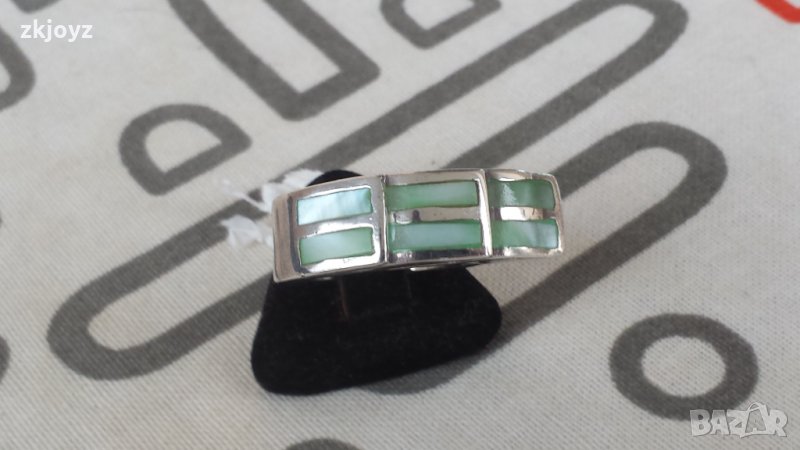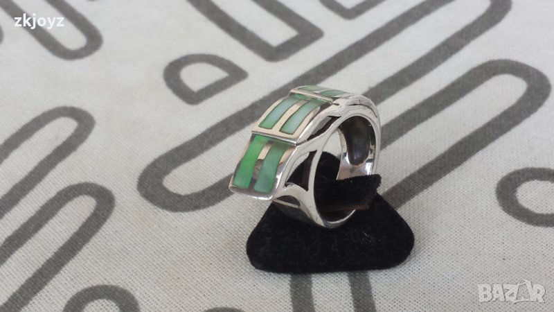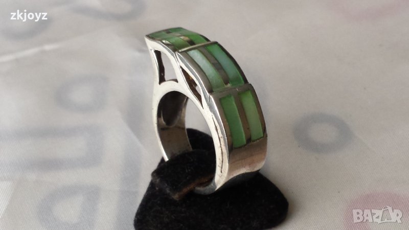 СРЕБЪРЕН ПРЪСТЕН с 6 КАМЪКА от ЗЕЛЕН СЕДЕФ 8.24 ГР. / 925 МАРКИРАН → Обява 35230402
