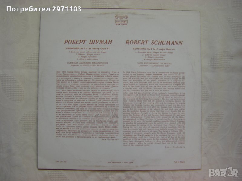Грамофонна плоча - ВСА 10289 - Роберт Шуман - Симфония № 2