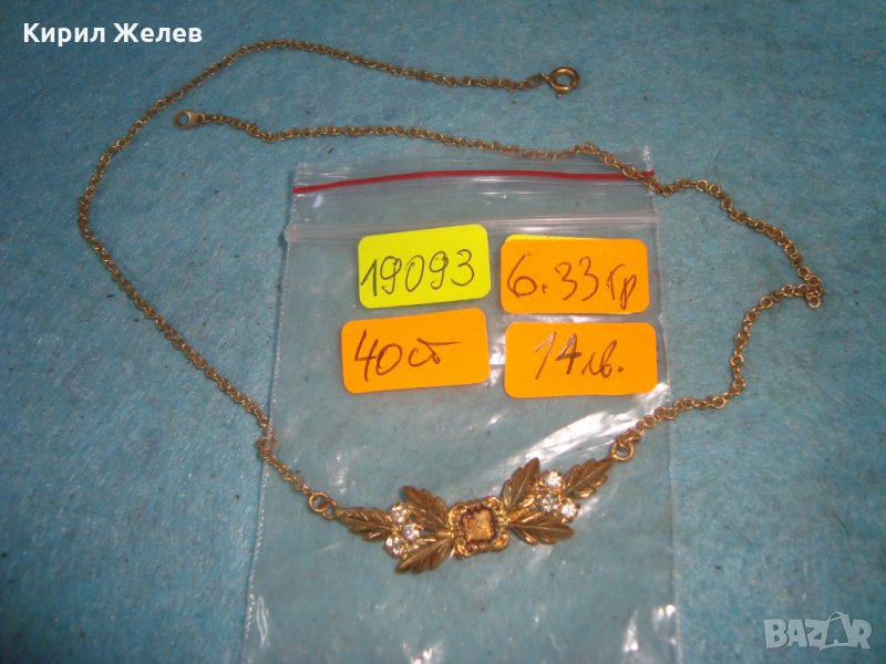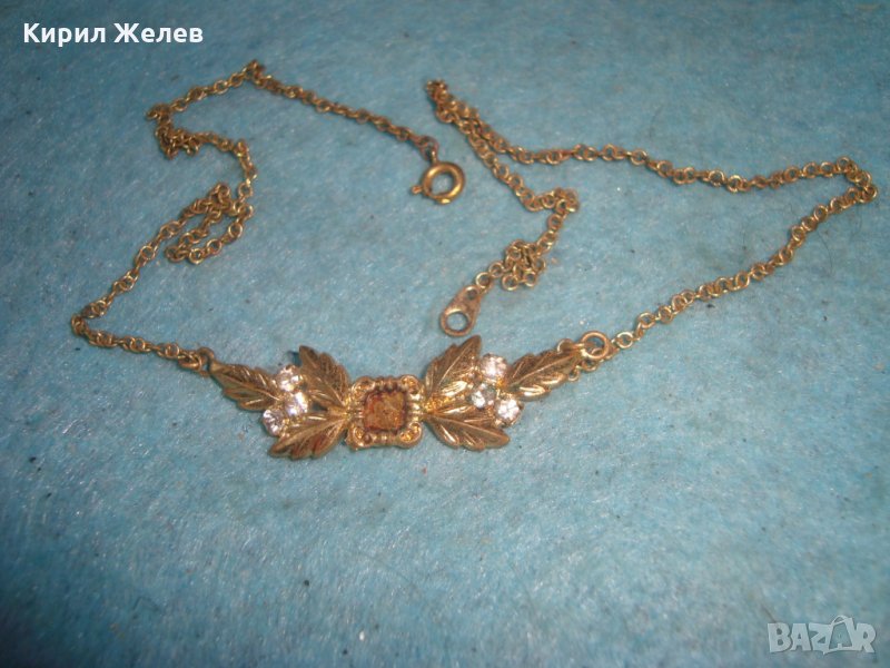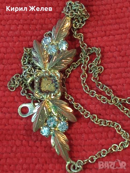 СТАРИННО БРОНЗОВО ПОЗЛАТЕНО ФЛОРАЛНО КОЛИЕ с инкрустирани циркони 19093