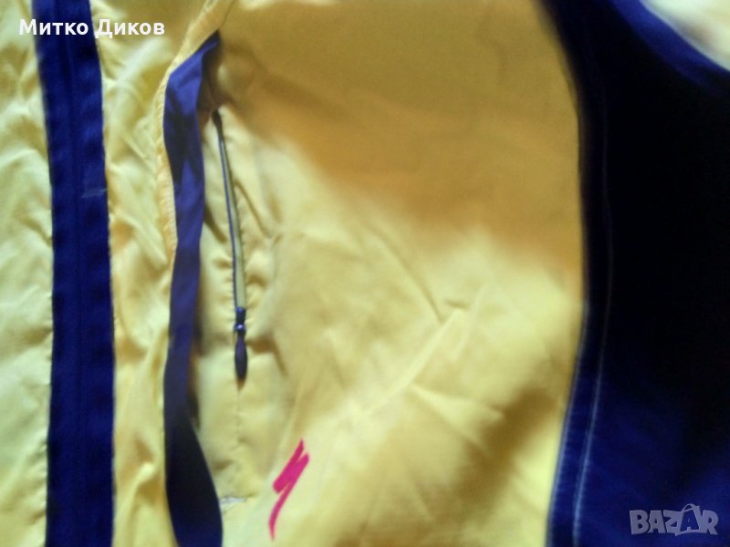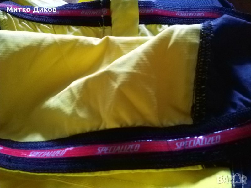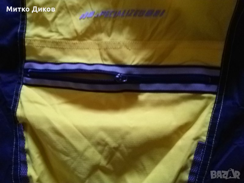 Колездачно яке марково на Специализед размер Л--отгоре додолу-70см и подмишници-56см-много добро състояние-със светлоотразител-найлон е не пропуска вода и отдолу със силиконов грип-отстрани до гърдите джоб със цип работещ и отзад джоб работещ ъсъс цип-има проблем с ципа отзад и на ръкавите и затова съм намалил цената-изпращам по еконт-по спиди