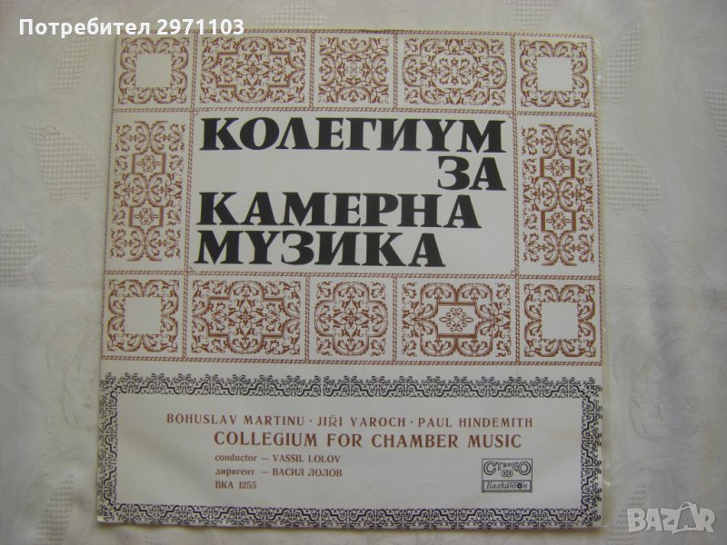 Грамофонна плоча - ВКА 1255 - Колегиум за камерна музика при Комитет за телевизия и радио, диригент Васил Лолов