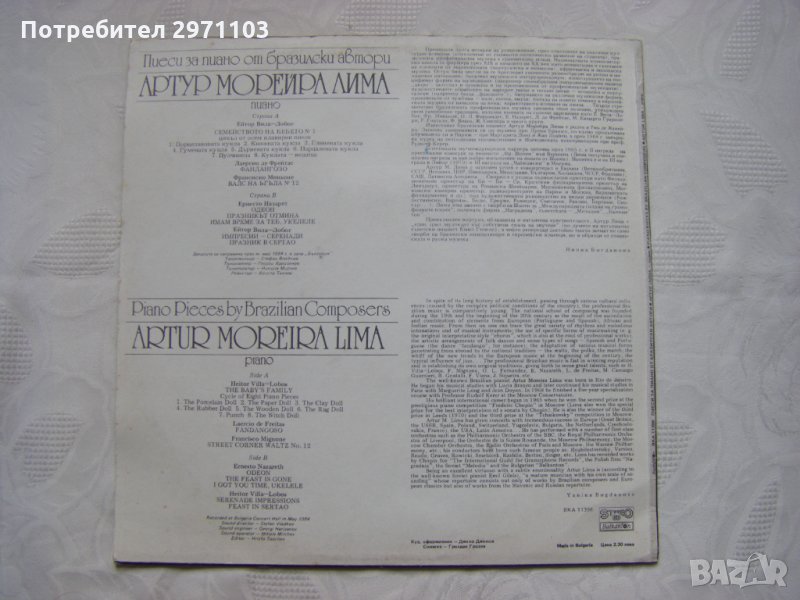 Грамофонна плоча - ВКА 11398 - Песни за пиано от бразилски автори изп. Артур Морейра Лима