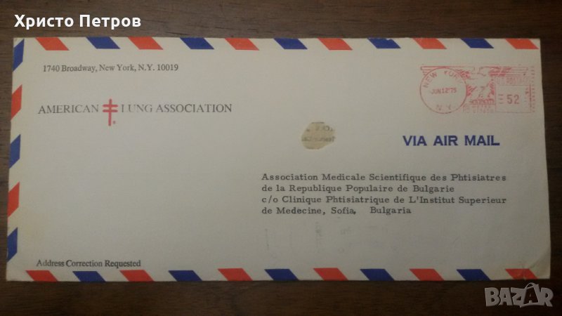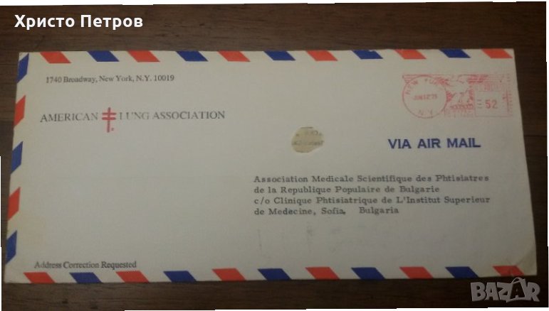 ПОЩЕНСКИ ПЛИК ПЪТУВАЛ ОТ САЩ ДО БЪЛГАРИЯ - 1975