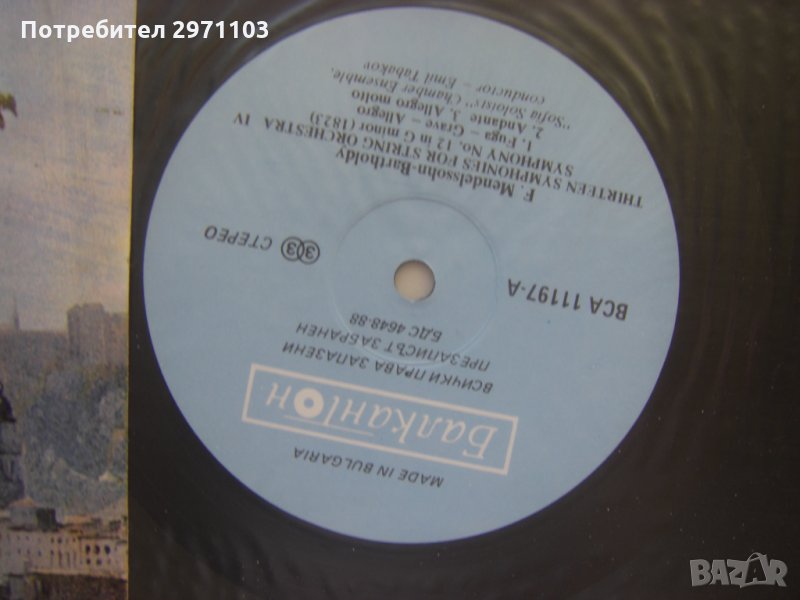 Грамофонна плоча - ВСА 11197 - Феликс Менделсон-Бартолди. 13 симфонии за струнен оркестър. Изп. камерен ансамбъл "Софийски солисти", дир. Емил Табаков