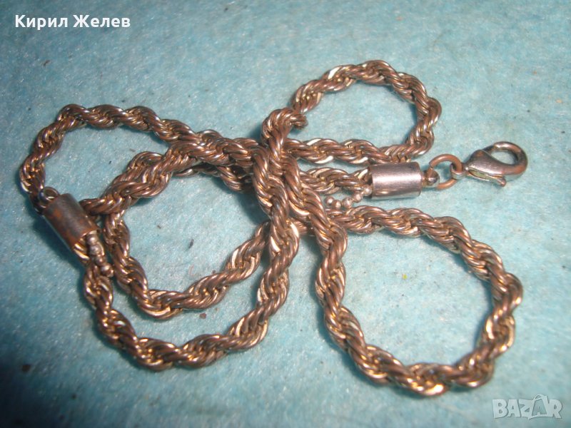 СТАР СТОМАНЕН ВИНТИДЖ ЗДРАВА ДВОЙНА ПЛЕТКА ПОСРЕБРЕН ЛАНЕЦ КЮСТЕК КОЛИЕ 25192