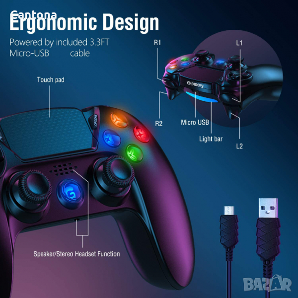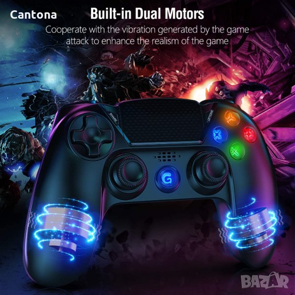 Максимален комфорт при игра: в сравнение с други нормални контролери, нашият контролер е ергономично проектиран с асиметрични джойстици. Такъв дизайн може ефективно да облекчи мускулната умора на ставата на палеца, за да ви осигури по-удобно време за игра. Бутоните за действие с LED осветяване са по-лесни за работа дори през нощта.