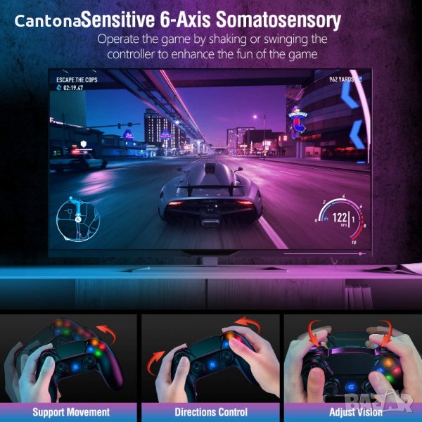 Цялостно игрово изживяване: В допълнение към функции като 6-осен сензор и вибрационна обратна връзка за по-реалистично игрово изживяване, нашият контролер има и аудио опция, така че можете да свържете слушалките си, за да се потопите напълно в света на игрите. Междувременно не е нужно да се притеснявате, че звукът на играта ще смущава семействата ви или приятелката ви в страничната стая.