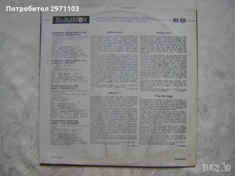 Изп. Н. Николов (Момчил), Г. Генов, Св. Рамаданов, Д. Петков, П. Герджиков, Н. Добриянова, БХК "Св. Обретенов", хор "Бодра смяна" и симф. оркестър на БРТ, дир. К.Илиев