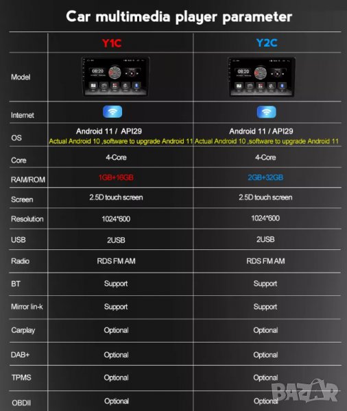 2GB+64GB цена 329.90лв, 4-ядрен процесор, Android Auto, CarPlay, Wi-Fi, RDS, AHD камера