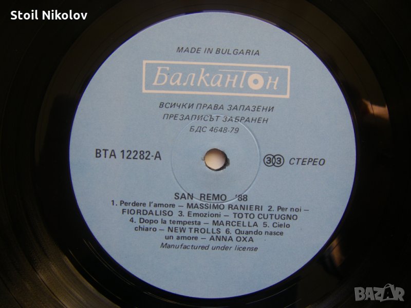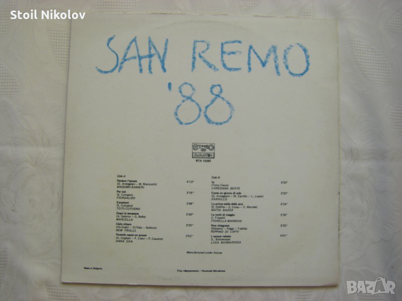 Грамофонна плоча - ВТА 12282 - Сан Ремо ‘88