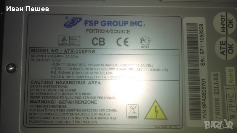 Захранващ блок ATX-350 PNR, снимка 1 - Захранвания и кутии - 35250321 Захранващ блок ATX-350 PNR, снимка 2 - Захранвания и кутии - 35250321 Захранващ блок ATX-350 PNR, снимка 3 - Захранвания и кутии - 35250321 Захранващ блок ATX-350 PNR, снимка 4 - Захранвания и кутии - 35250321 1/4