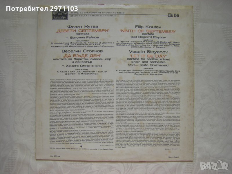Ф. Кутев. Кантата "9-ти септември", текст Б. Райнов