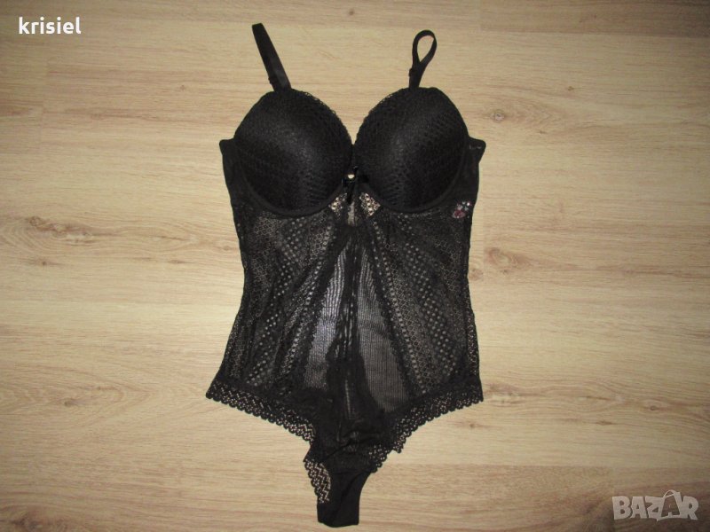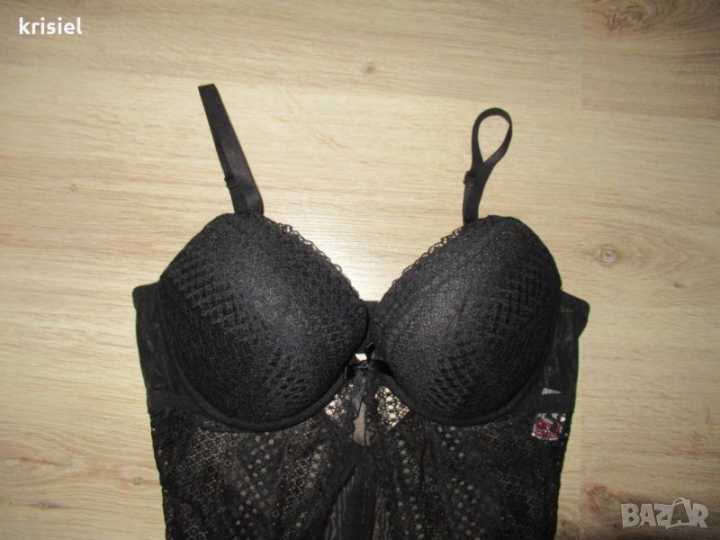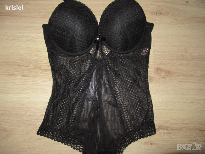 Бодито е ново.На TRIUMPH.Номер 38--S/M .Номер 80C.Страхотно красив и впечатляващ модел.Ластична дантела и тюл.С твърди чашки.
