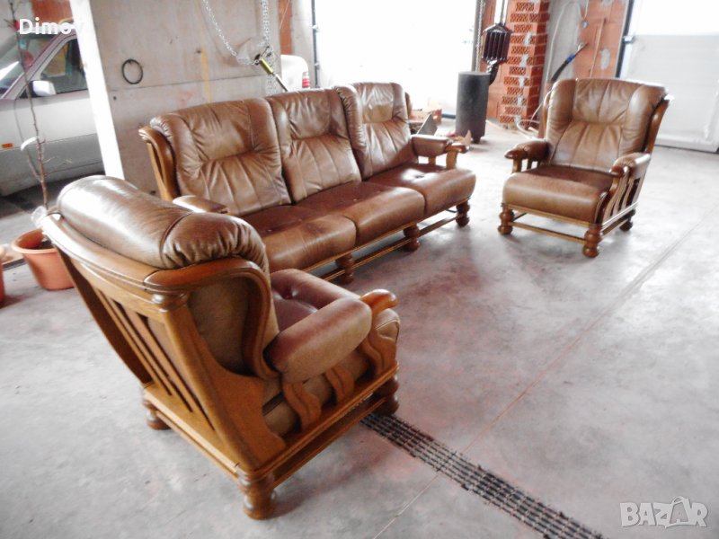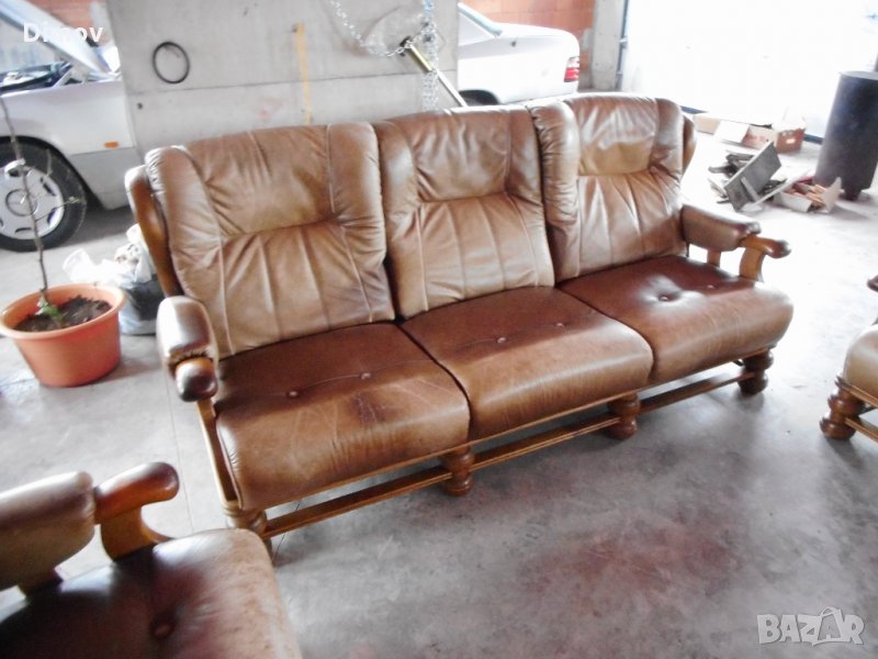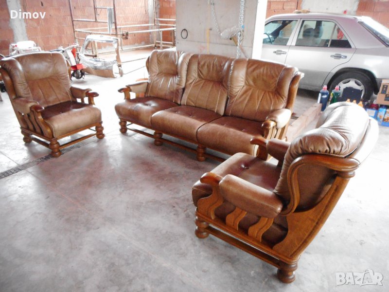 гарнитура състояща се от три местен диван и два фотьойла. Естествена телешка