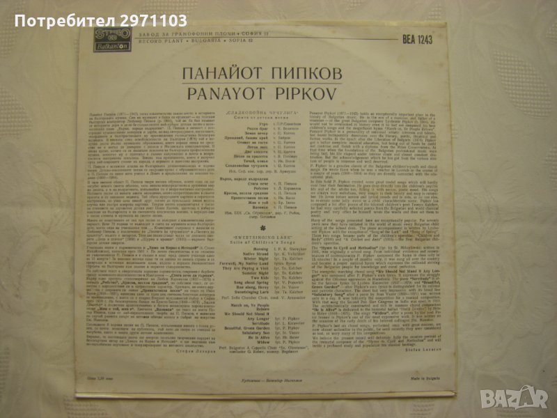 Изпълнява Софийски камерен хор, диригент Васил Арнаудов и Българска хорова капела "Светослав Обретенов", диригент Георги Робев; съпровожда Иван Богданов - пиано
