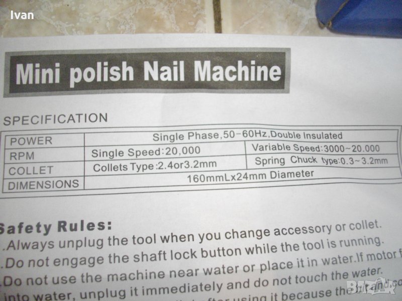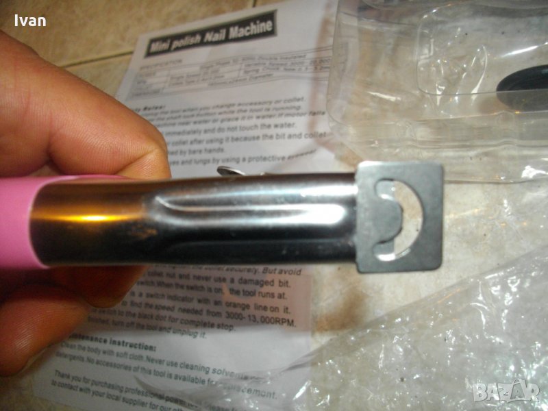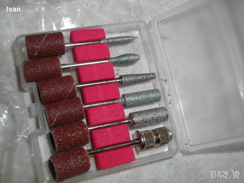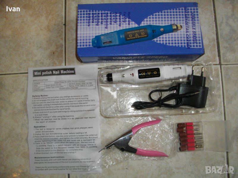 мини дрелка-шлифовалка-електрическа пила за домашна и професионална ноктопластика. Комплекта е с аксесоари-накрайници диамантини за шлайфане - 6 бр. и отделно 6 ролкови шкурки.