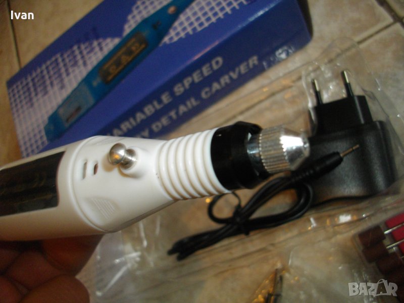 Електрическата пила - шлифовалка-дрелка е тип писалка. Главата е метална, с хром покритие. Блокировън бутон на главата при смяна на аксесоари.