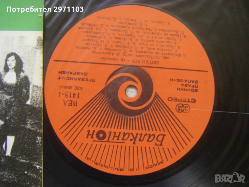Грамофонна плоча - ВЕА 1418 - Детски хор - град Казанлък, диригент П. Павлович; съпровожда Л. Апостолова