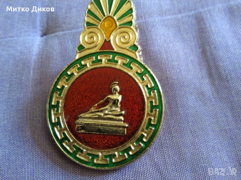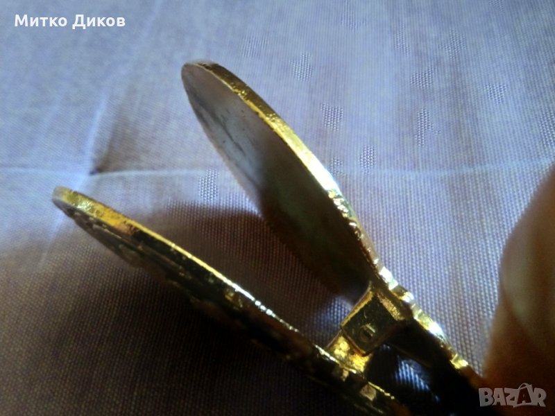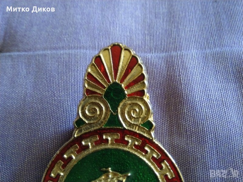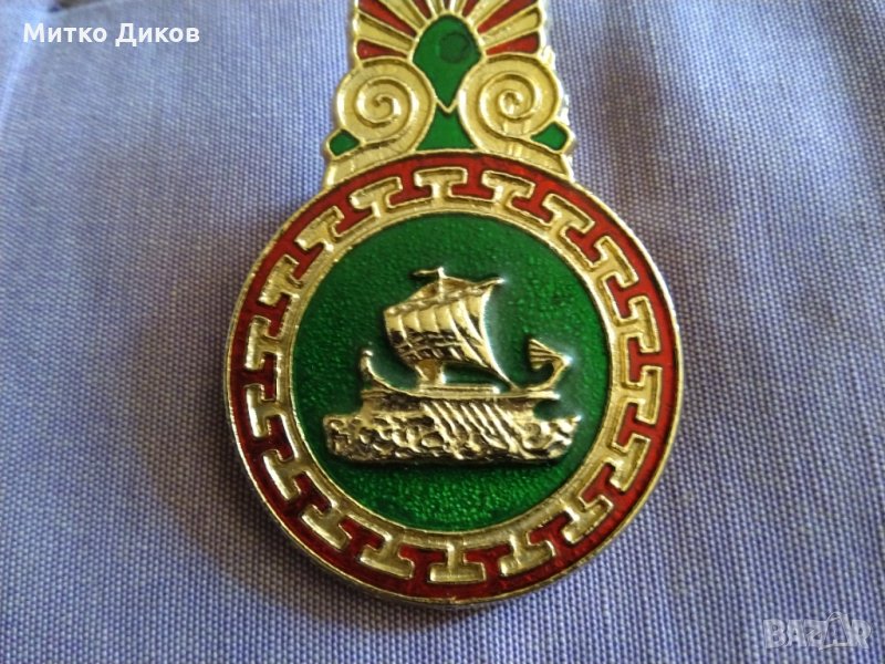 Винтидж гръцка емайл бронзова скоба за хартия двойна Атина Палада и Арго кораб фи 55мм → Обява 35259479