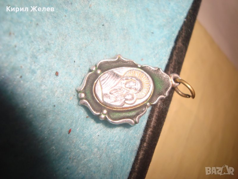 СТАРА МАЛКА СРЕБРИСТА НАГРЪДНА ПРАВОСЛАВНА ИКОНКА ДВУСТРАННА с КРЪСТ 7023