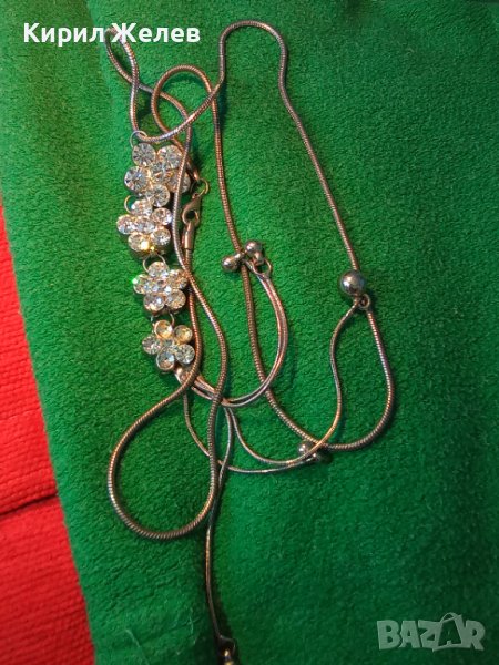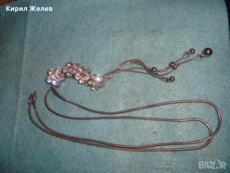 ИСКРЯЩО СТИЛНО ПОСРЕБРЕНО ФЛОРАЛНО КОЛИЕ ПЕНДАНТ АРТ МЕДАЛЬОН с ФАСЕТИРАНИ КРИСТАЛИ 3963