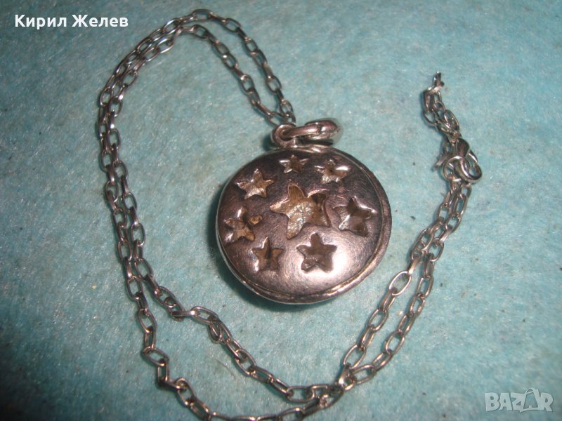 ПОСРЕБРЕН АРТ НУВО СТИЛ СКЪПОЦЕНЕН МЕДАЛЬОН ПЕНДАНТ ЗВЕЗДА АЖУРЕН с ВЕРИЖКА 4534