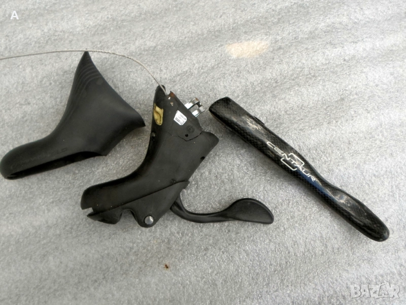 Карбонови дуали 2/10 Campagnolo Centaur . /лявата команда има пукнатина по корпуса//. Спирачки Campagnolo Centaur /продадени/.Комплект дерайльори 130 лв.Венец касета/10ка/11* 23/218 гр/ //Продадена/..