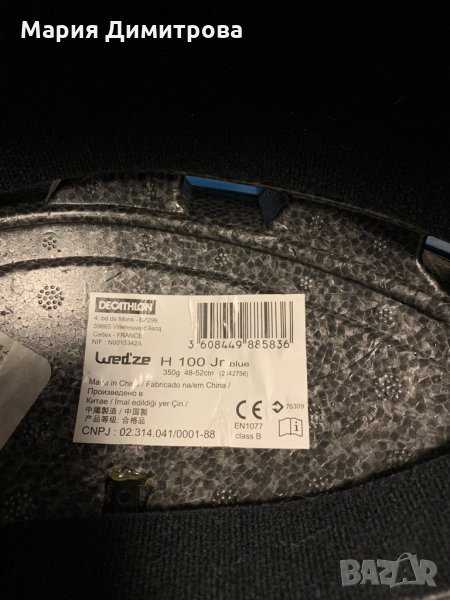 Размер на каската- 48-52 см- за около 6-7 год. дете. Закупена от Декатлон.