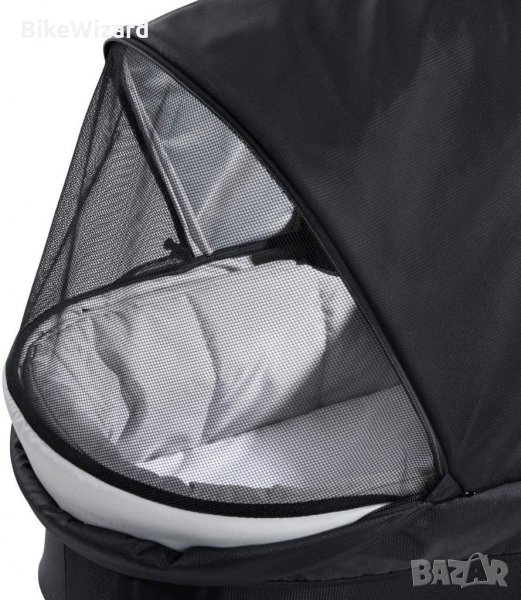 Кошът за новородено осигурява спокоен сън на децата по време на по-дълги разходки.