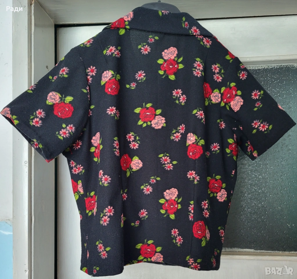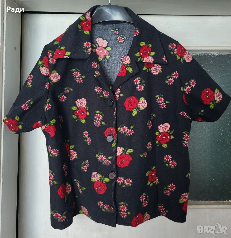 4. Продавам дамска блуза с къс ръкав Черна с цветя
