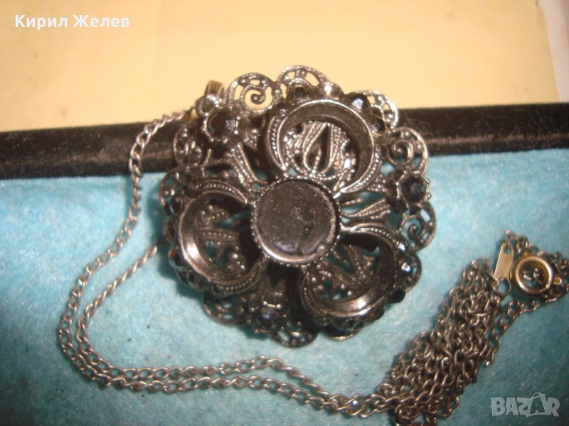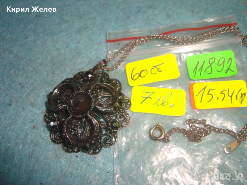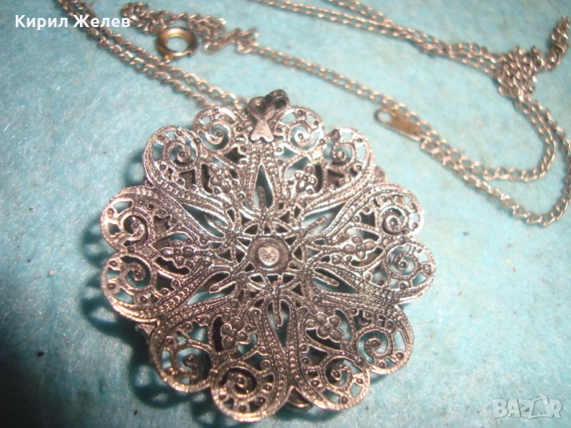 СТАР СРЕБРИСТ АРТ ДЕКО СТИЛ ФИЛИГРАНЕН ТИП МЕДАЛЬОН с ТЪНКА ПОСРЕБРЕНА ВЕРИЖКА 11892