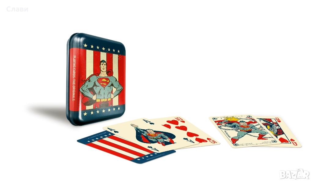 Карти за игра Joker, Batman, Superman, HarleyQuinnVintage метална кутия