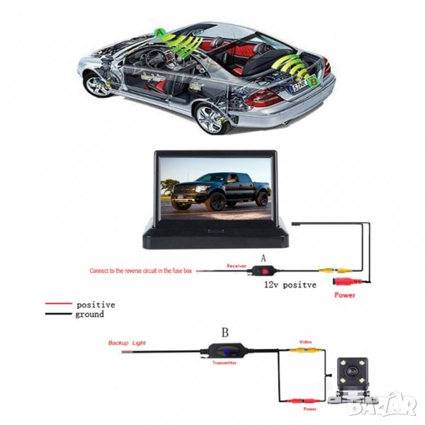 Супер цена! Безжичен висококачествен комплект 5.1 ″ LCD монитор с безжична камера за заден ход LED IR за нощно виждане.