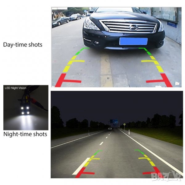 2. Ъгъл - 170° Super Wide Angel Rear View Backup Reverse Camera: 4 инфрачервени IR LED диода за нощно виждане; Водоустойчива, прахоустойчива и удароустойчива.