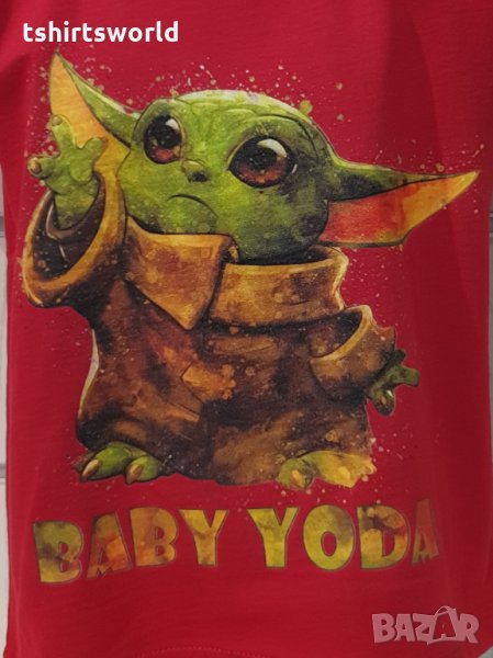 Страхотна нова детска тениска в червен цвят с дигитален печат на героя от Междузвездни войни, Бейби Йода. Тениската е изработена в България под марката PRINTEX от висококачествен 100% пениран памук, който запазва цялостта на материята и наситеността на цветовете дълго време. С удобна кройка, тениската е свободна и позволява максимален комфорт при носене. Професионално изработен висококачествен дигитален печат, устойчив на пране с години. Тениската може да се пере при температура до 40 градуса. Спокойно можем да гарантираме за качеството на изработката и ярките цветове на дизайна.
