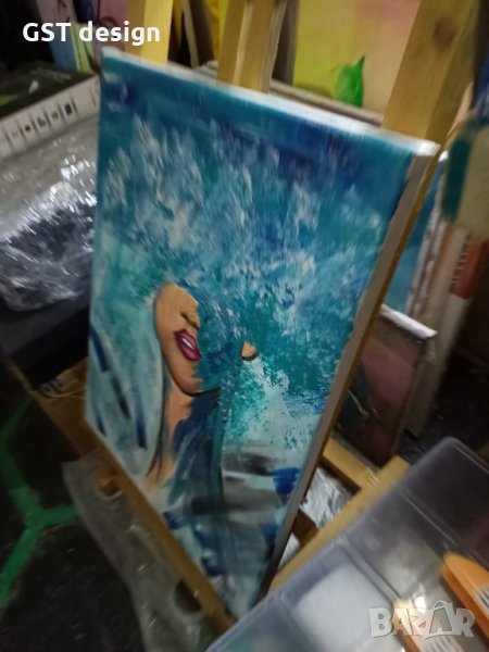 Платно на дървена рамка, боядисана и отстрани може да се окачи и така или да и сложите одков рамка по избор. Акрилни бои