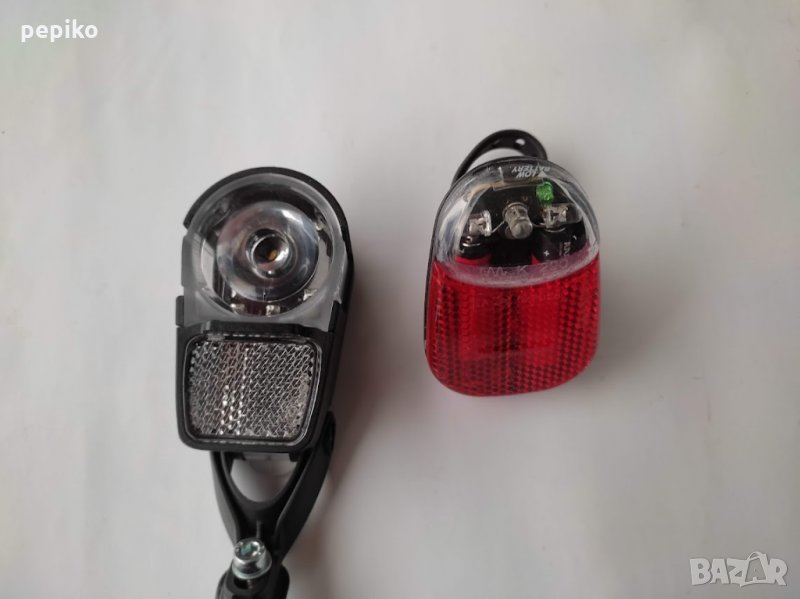 Комплект НОВИ електронни фарче и стопче H-IKE pat pend за велосипед,елегантно фарче много моштна свитлина,включване с плъзгане светлоотразителя на долу,стопчето захващане на колчето на седалката,включване с бутон от зад,добър комплект.