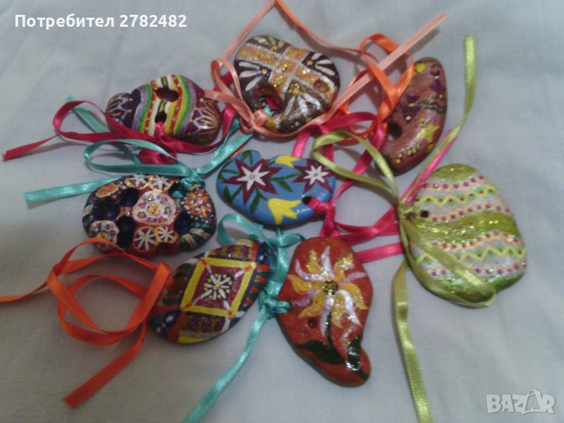 2. Ръчно рисувани морски камъчета с водоустойчиви бои. Предлагат се с панделка и опаковка найлоново пликче. Подходящи за медальони, за декорация на букети, чанти, стена и т.н. По 3 лв. бр. При закупуване на едро – отстъпки.