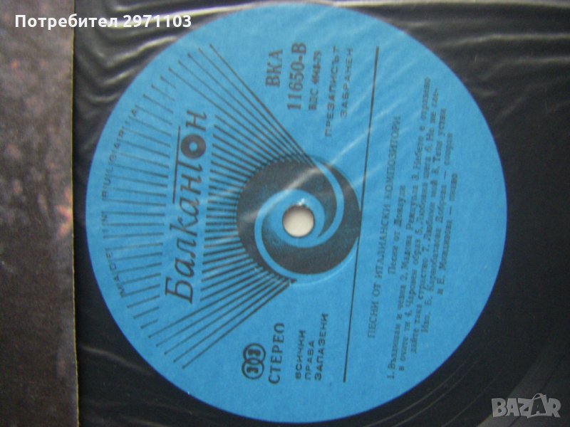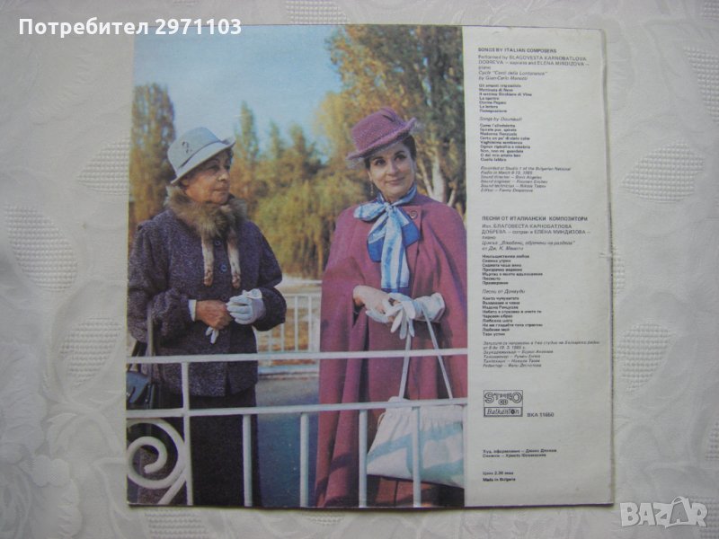 Грамофонна плоча - ВКА 11650 - Песни от италиански композитори. Благовеста Карнобатлова-Добрева - сопран; съпровожда на пиано Елена Миндизова