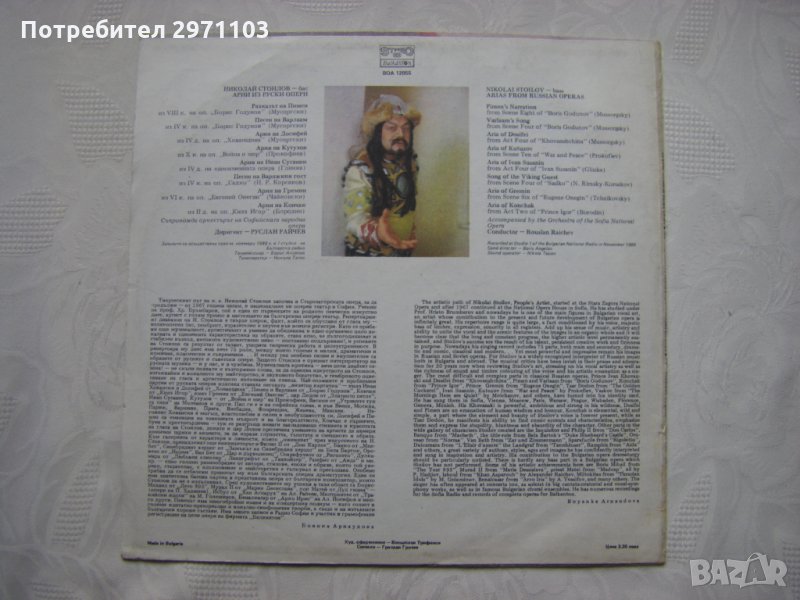 Грамофонна плоча - ВОА 12055 - Николай Стоилов - бас. Арии из руски опери
